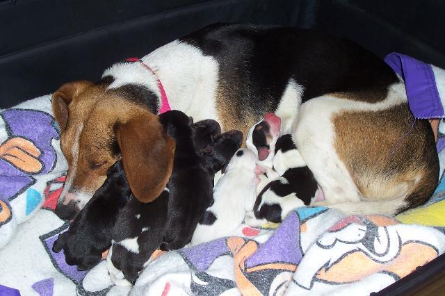 Daisy had 8 beagle mix puppies.