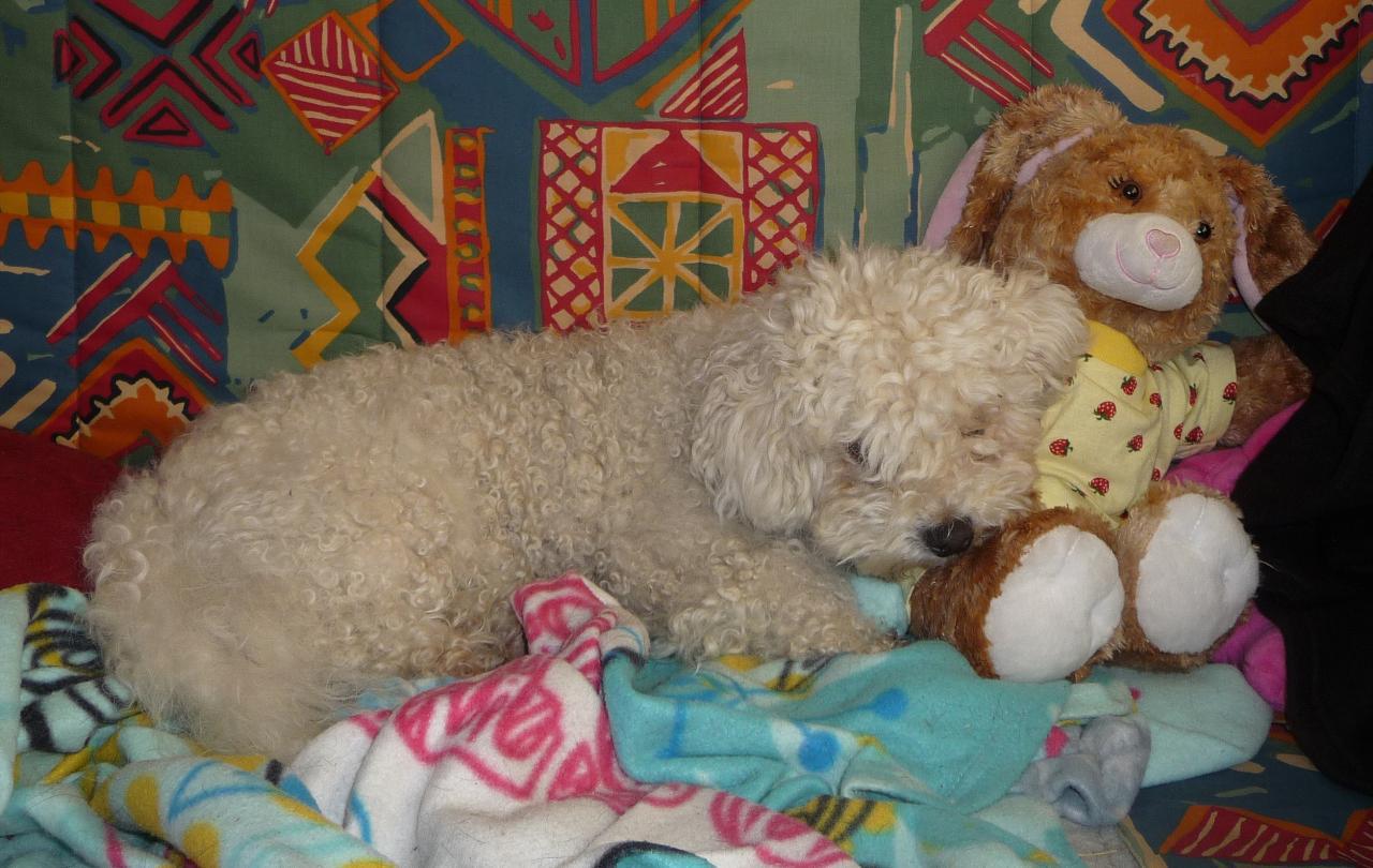 Star sleeping in luxury - on a blanket, snuggled up to a teddy. This was not posed, I just found her like this and couldn't resist recording the moment. What a cutie!