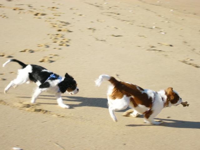 This is Bella & Cozmos first trip to the beach. Bella stole Cozmos shell, and now he wants it back :-D