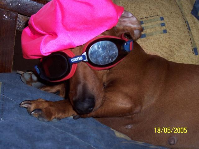 Molisha likes to swim, she's swimming teacher...wof, wof...