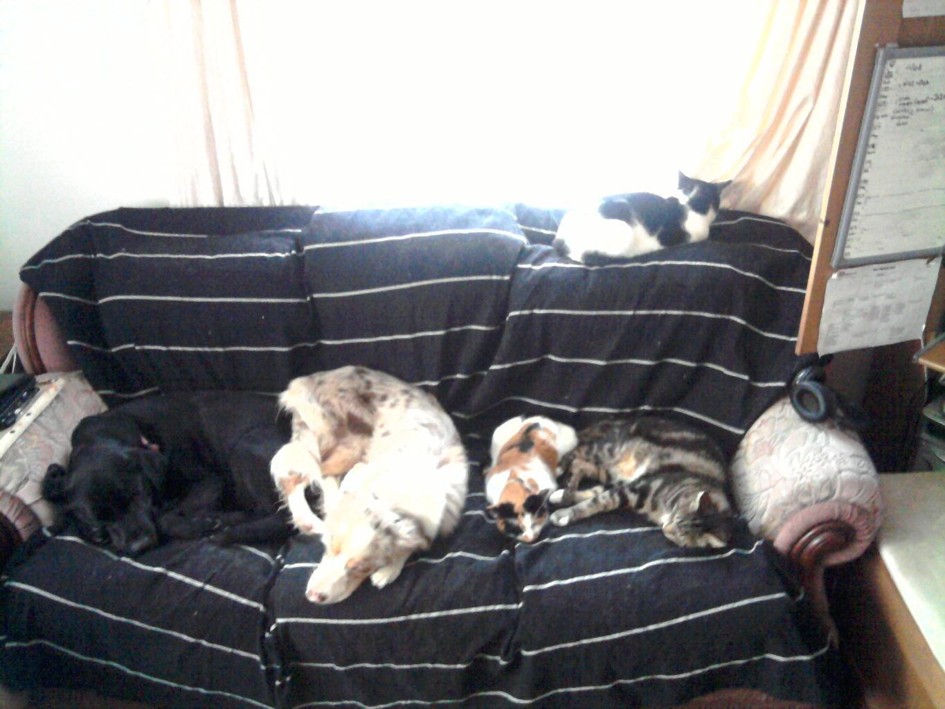 Our sofa is busy today - 5 out of our 6 animals alseep on it!