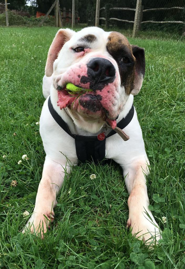Five-year-old Murray, who is currently being cared for by RSPCA South Godstone Animal Centre, in Surrey, is a tennis ball fanatic and staff decided to channel his enthusiasm into some fun Wimbledon predictions.