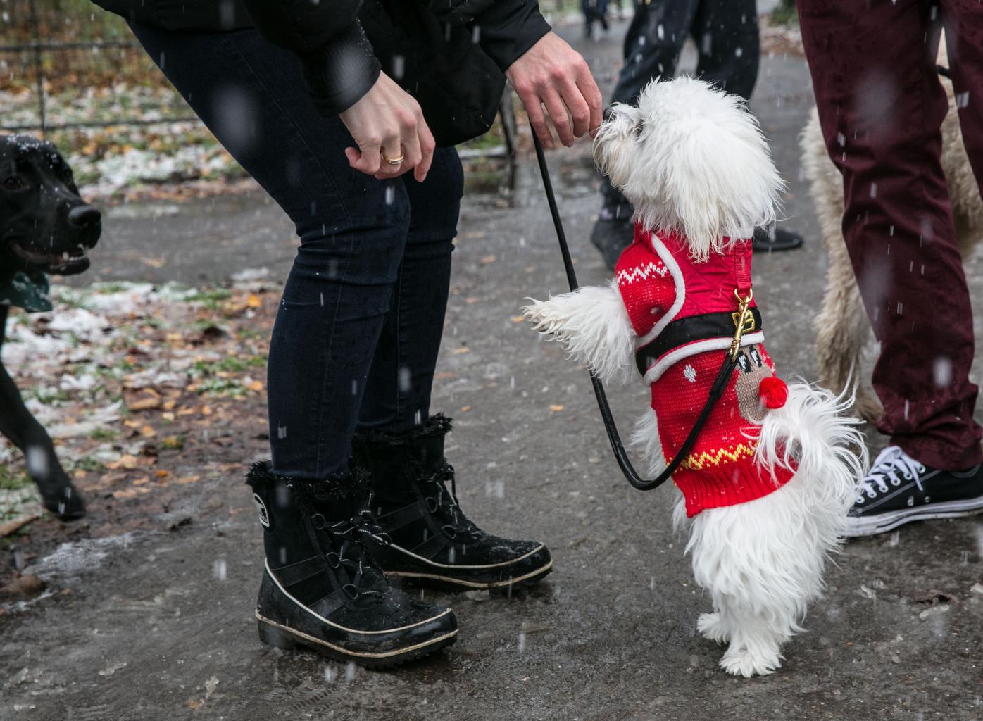 More than 300 dogs brave the snow wearing festive knits to support Save the Children’s Christmas Jumper Day