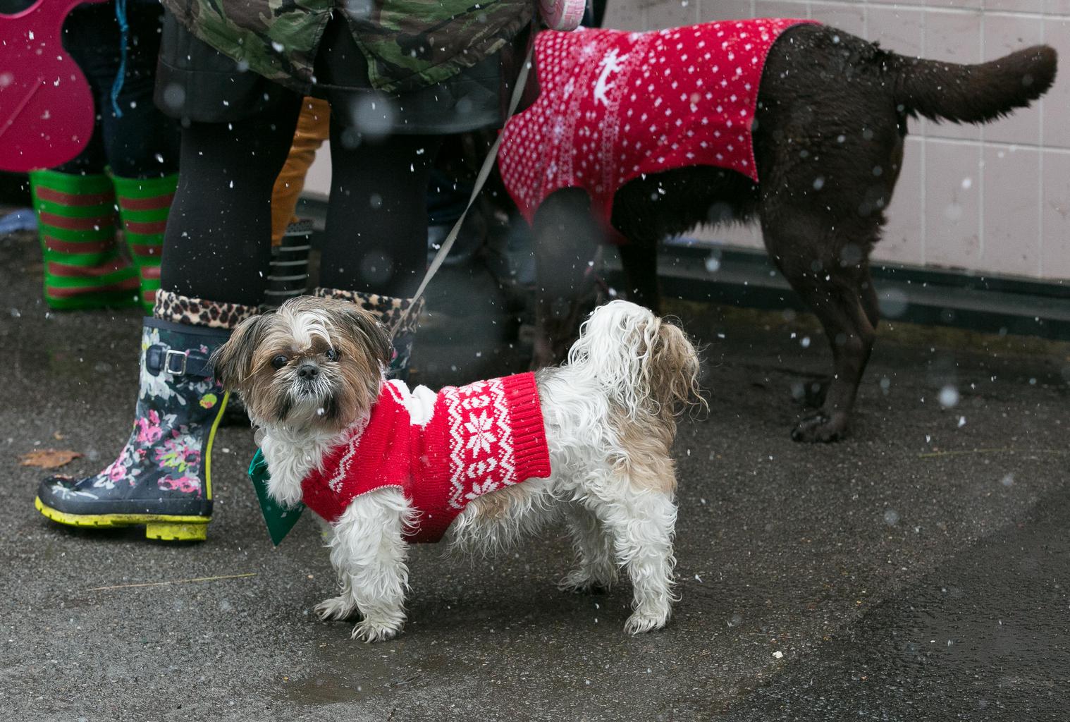 More than 300 dogs brave the snow wearing festive knits to support Save the Children’s Christmas Jumper Day