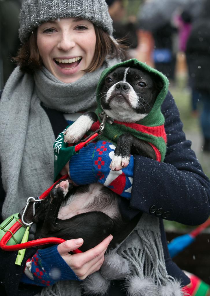 More than 300 dogs brave the snow wearing festive knits to support Save the Children’s Christmas Jumper Day