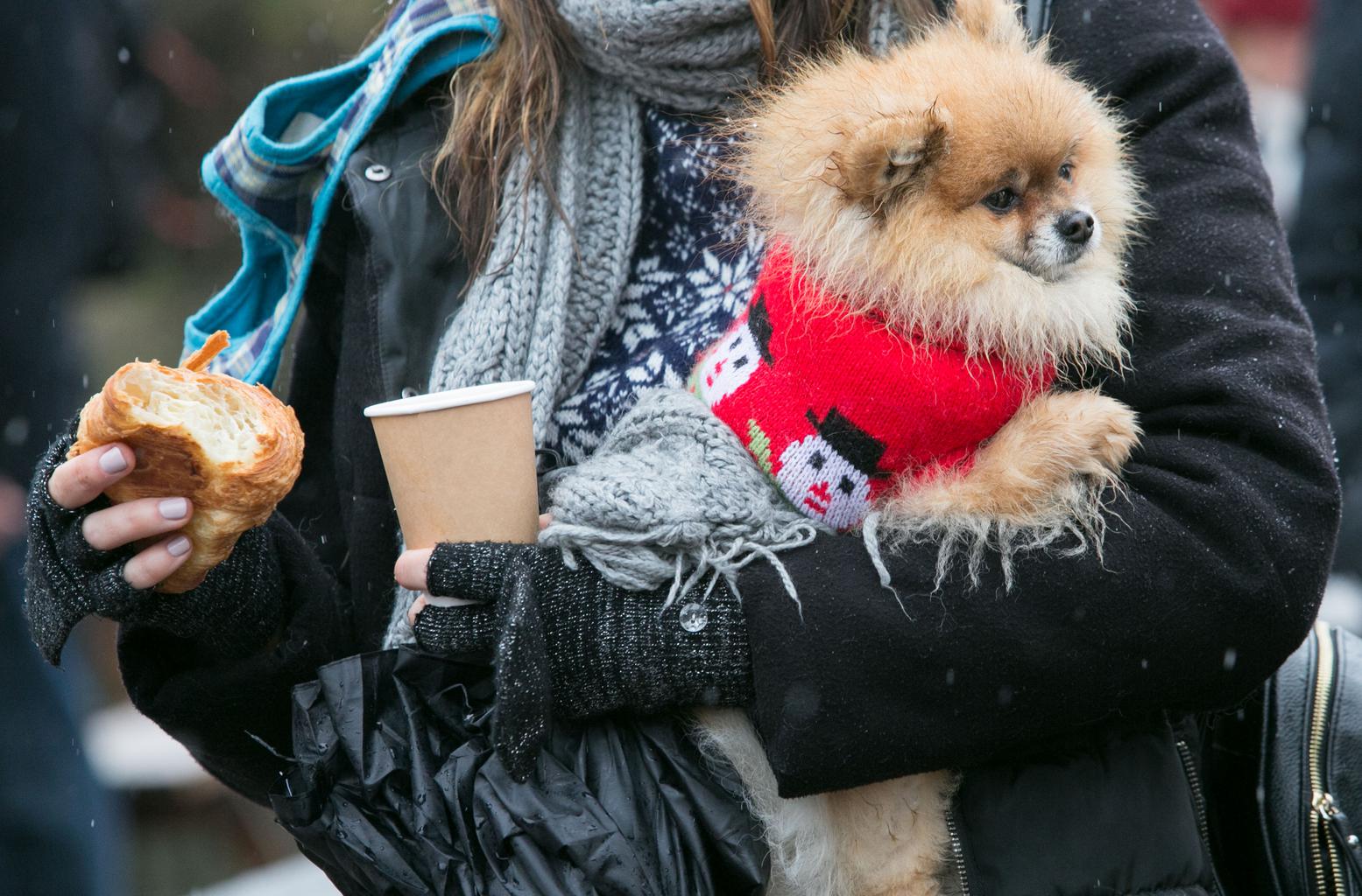 More than 300 dogs brave the snow wearing festive knits to support Save the Children’s Christmas Jumper Day